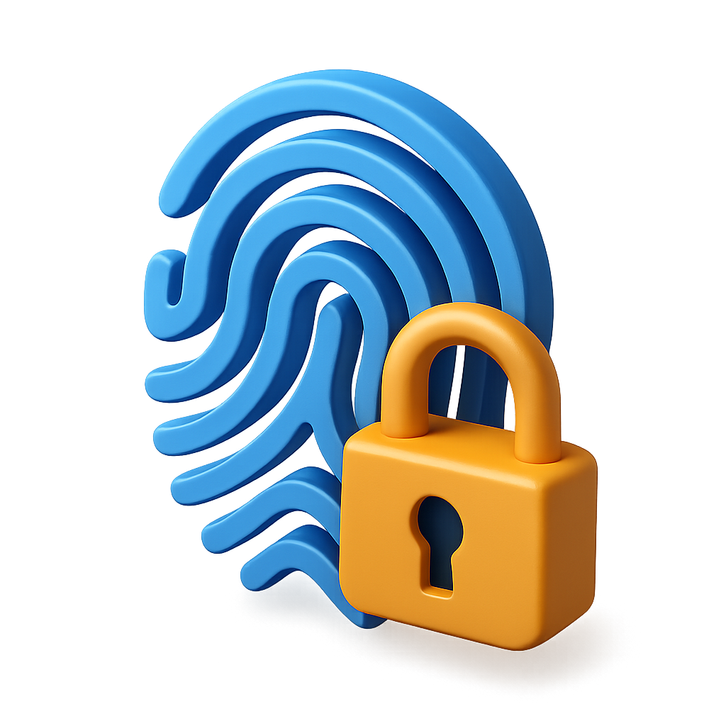 3D Secure Fingerprint Icon with Padlock Design