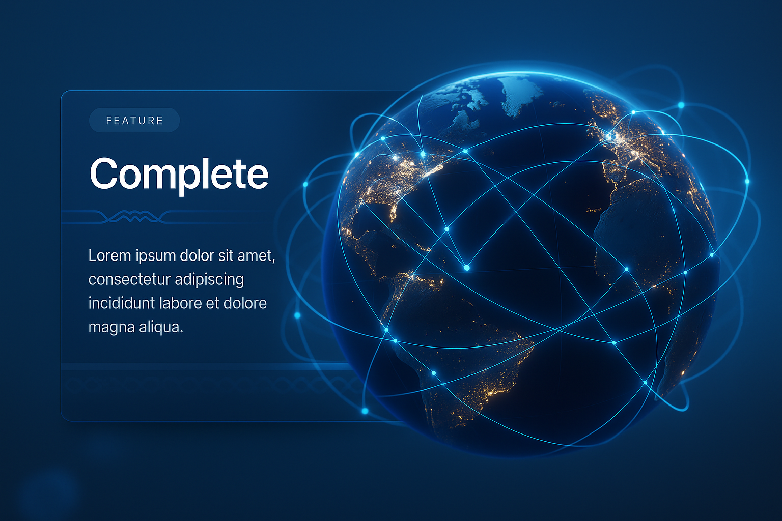 A stunning view of Earth at night showcasing illuminated continents, depicting global connectivity with light trails, emphasizing technology and community.