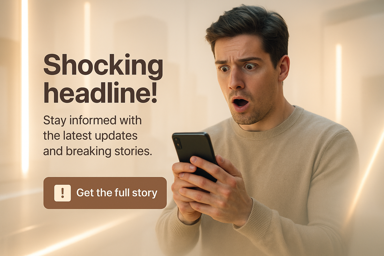 /Collection: /by davooda/Type: PNG/Dynamic social media post featuring a surprised man looking at his phone, designed to capture attention and promote news updates. Ideal for digital marketing and engagement.