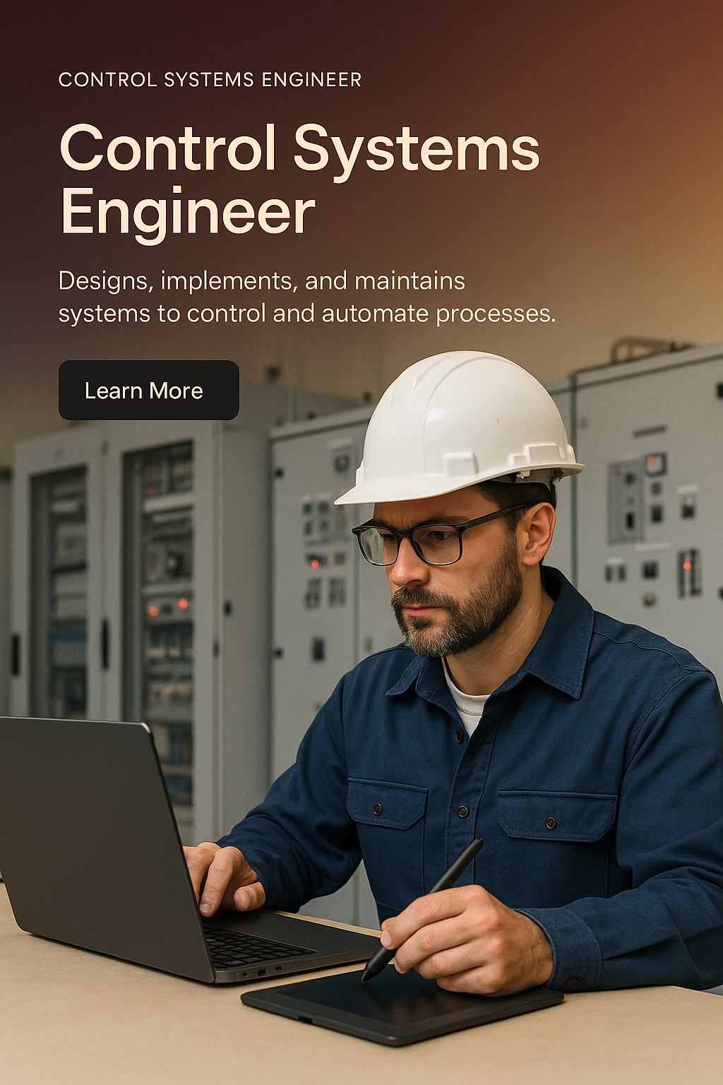 /Collection: /by davooda/Type: PNG/A control systems engineer, wearing a hard hat, is focused on his laptop, illustrating a professional work environment in engineering. The background features control panels.