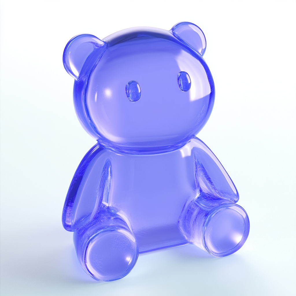 3D rendered translucent purple bear figurine featuring a cute and playful design. Ideal for decorative purposes or as a unique collectible item.