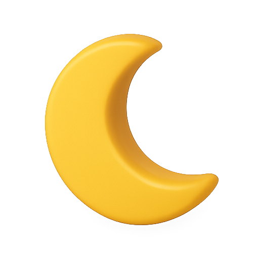 A vibrant, stylized yellow crescent moon icon with a smooth, glossy finish, suitable for use in digital design projects, applications, or thematic illustrations.
