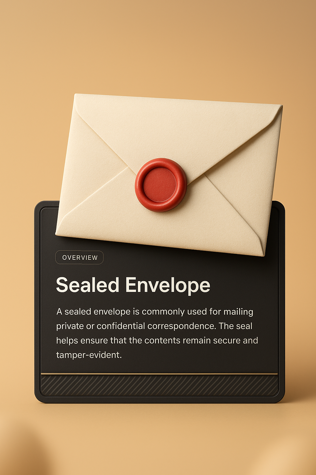 A 3D illustration featuring a sealed envelope with a wax seal, integrated into a stylish black panel. The background transitions smoothly from a gradient to a solid color, enhancing the overall aesthetic.