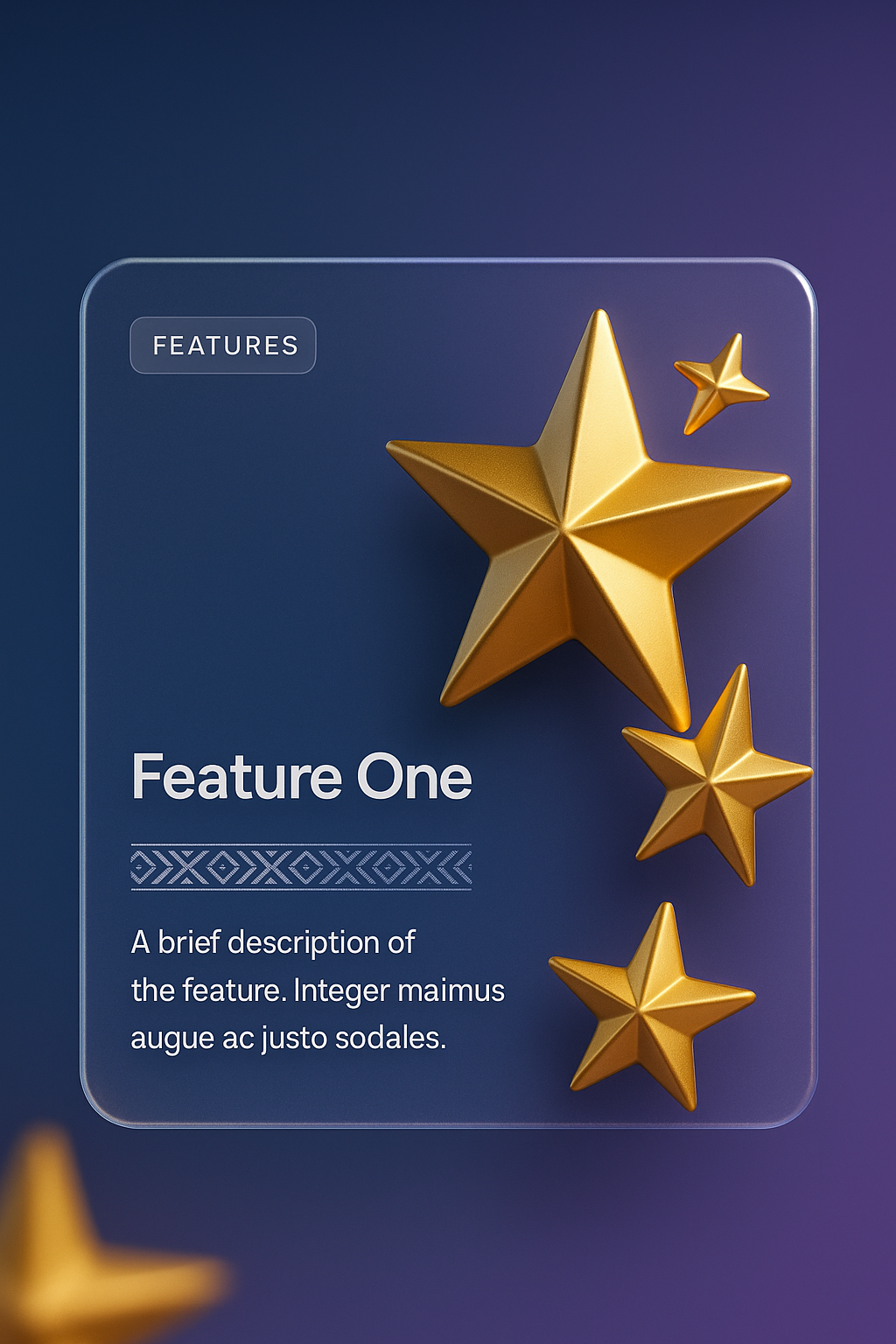 A visually appealing set of 3D golden stars in various shapes, integrated within a modern feature block design. The background smoothly transitions to a solid color, enhancing the realism.