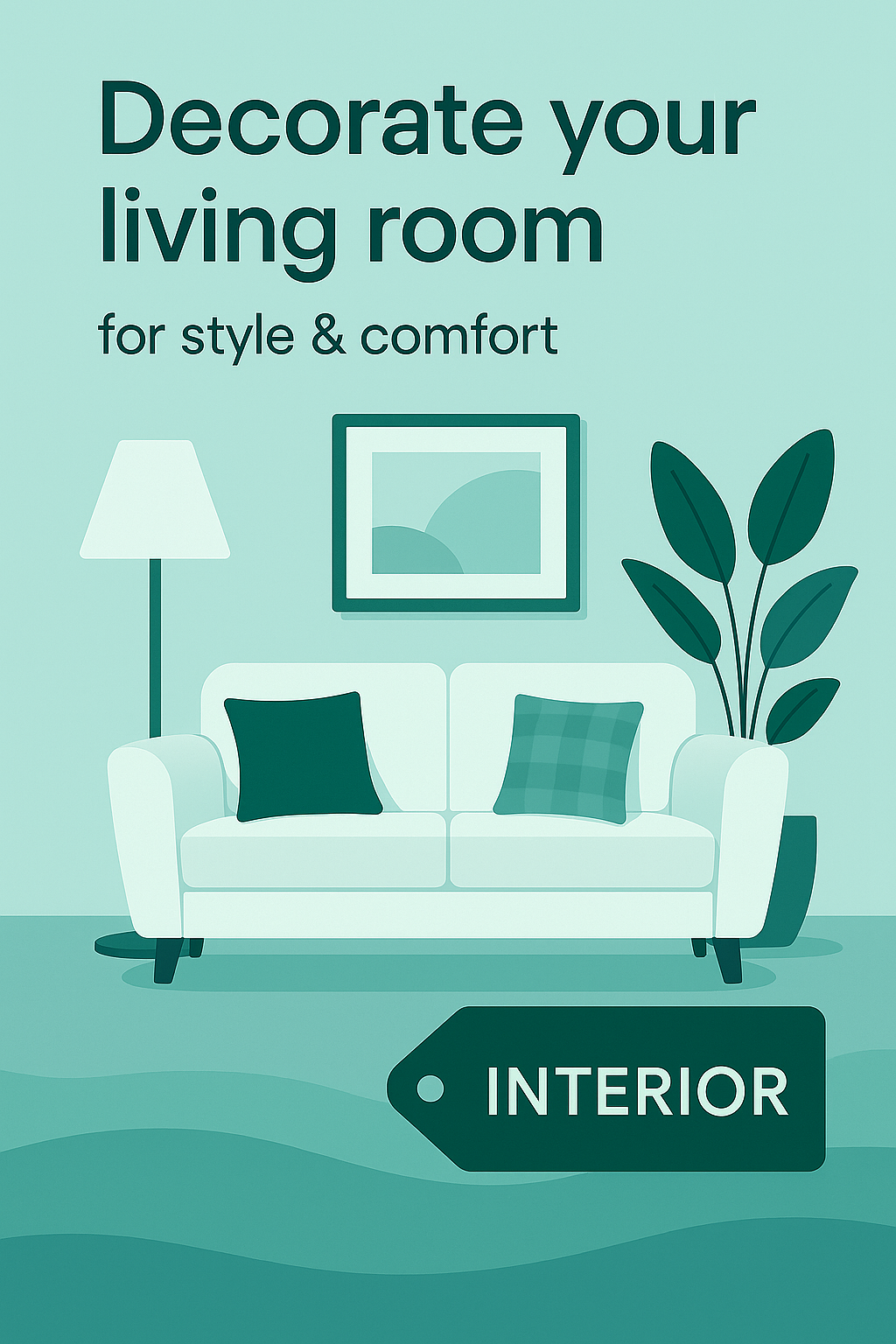 /Collection: /by davooda/Type: PNG/A modern graphic illustration focusing on living room decoration, featuring a cozy sofa, plants, and a lamp. Ideal for home decor promotions and interior design inspiration.