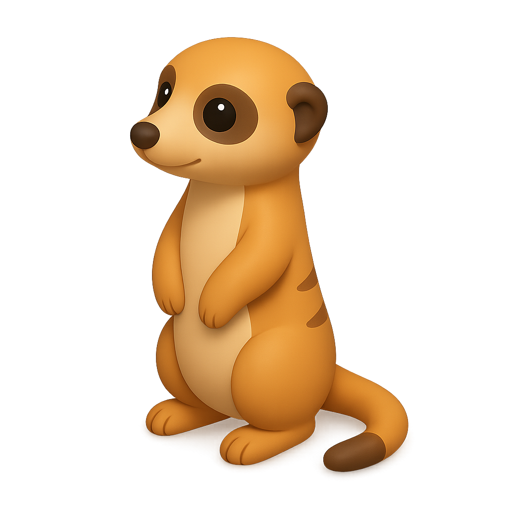 A charming 3D portrayal of a suricata, featuring a three-quarter view. The icon has a transparent background and a volumetric, isometric design, emphasizing its playful features.