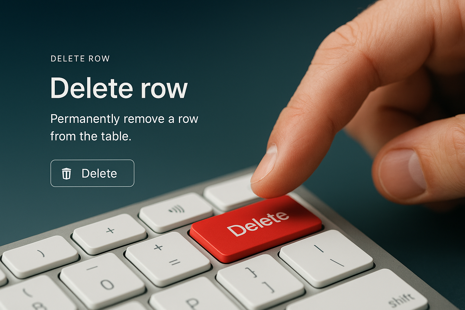 /Collection: /by davooda/Type: PNG/A sleek web design illustration showing a hand about to press a red 'Delete' key on a keyboard. The background features a dark gradient transitioning to white, enhancing readability.