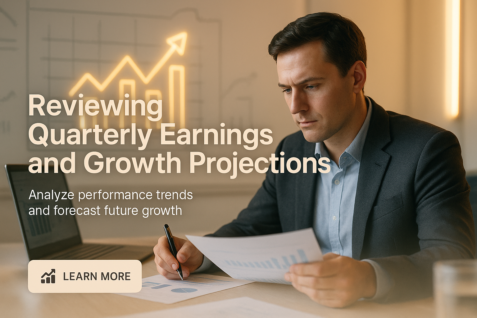 /Collection: /by davooda/Type: PNG/Professional image depicting a business analyst reviewing quarterly earnings and growth projections, ideal for financial reports or corporate presentations.