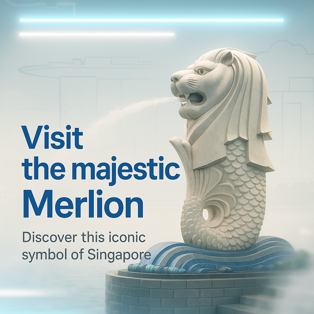 /Collection: /by davooda/Type: PNG/A visually appealing promotional image showcasing the iconic Merlion statue, designed for tourism marketing. The soft lighting and modern style enhance the allure of this Singaporean landmark.