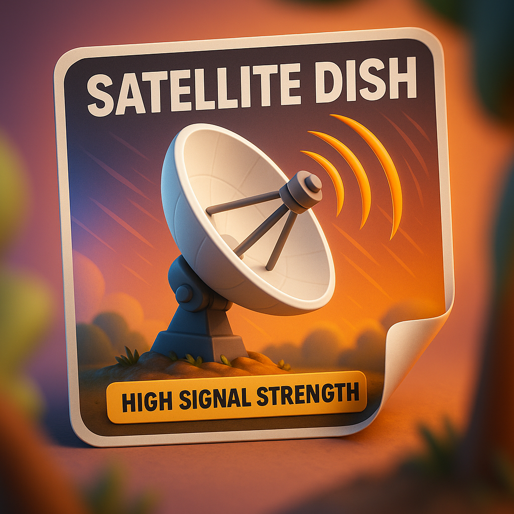 /Collection: /by davooda/Type: PNG/A stylized 3D graphic of a satellite dish emitting signal waves, designed with vibrant colors and a modern aesthetic, suitable for technology-related content and digital media.