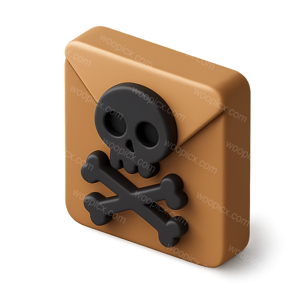 /Premium/Collection: /by davooda/Type: PNG/A stylized 3D icon representing blackmail, featuring an envelope with a skull and crossbones motif. The design is presented in a three-quarter view with a smooth, isometric look and a volumetric feel.