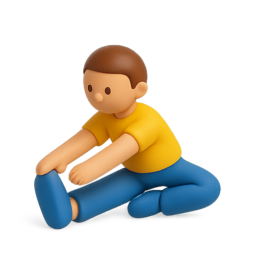 A stylized 3D character performing a stretching exercise, featuring a friendly and approachable design. Ideal for health, fitness, or wellness-related content.