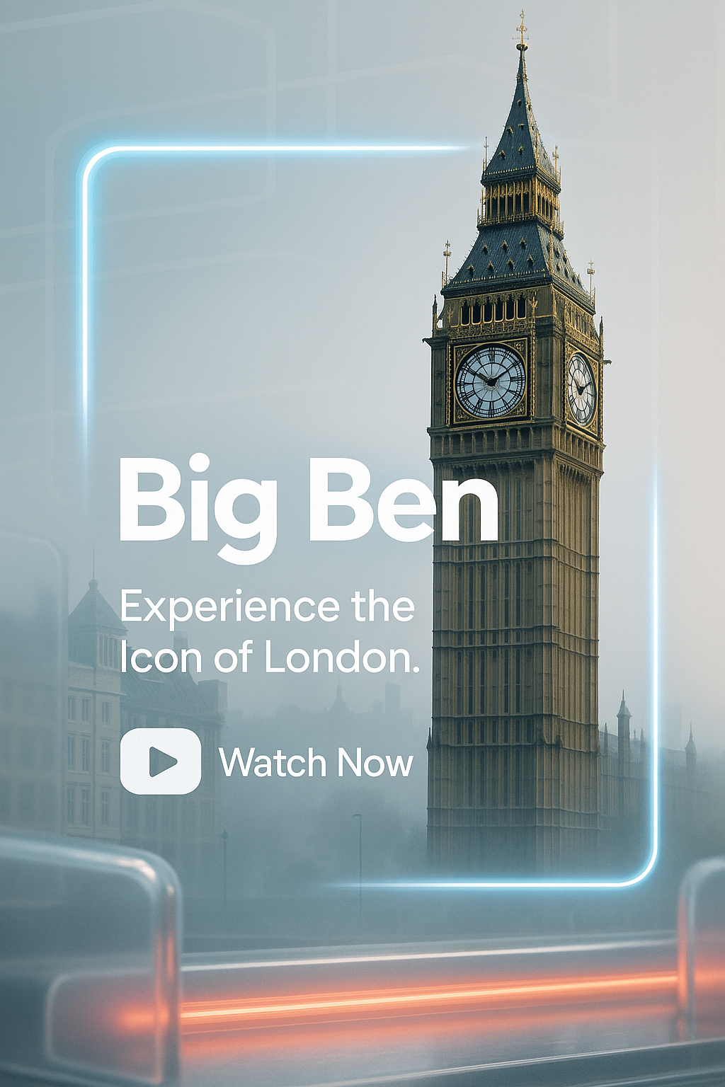 Engaging promotional graphic highlighting Big Ben, featuring modern design elements and a call to action, ideal for tourism or travel marketing.
