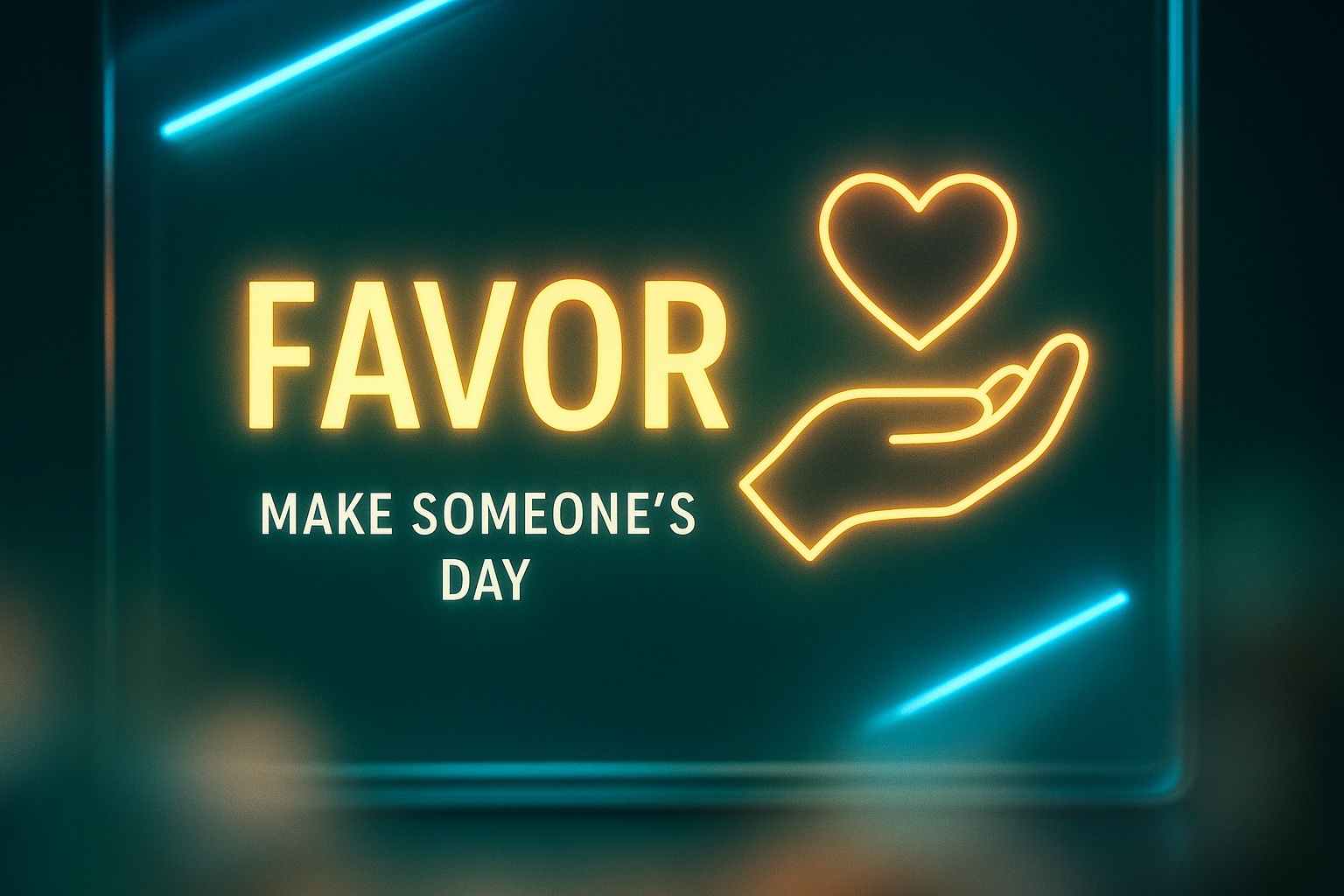 /Collection: /by davooda/Type: PNG/The image features a neon-themed design emphasizing the word 'FAVOR' along with a glowing hand and heart, creating a warm, inviting atmosphere. The background has a soft, foggy effect, enhancing the neon lights.