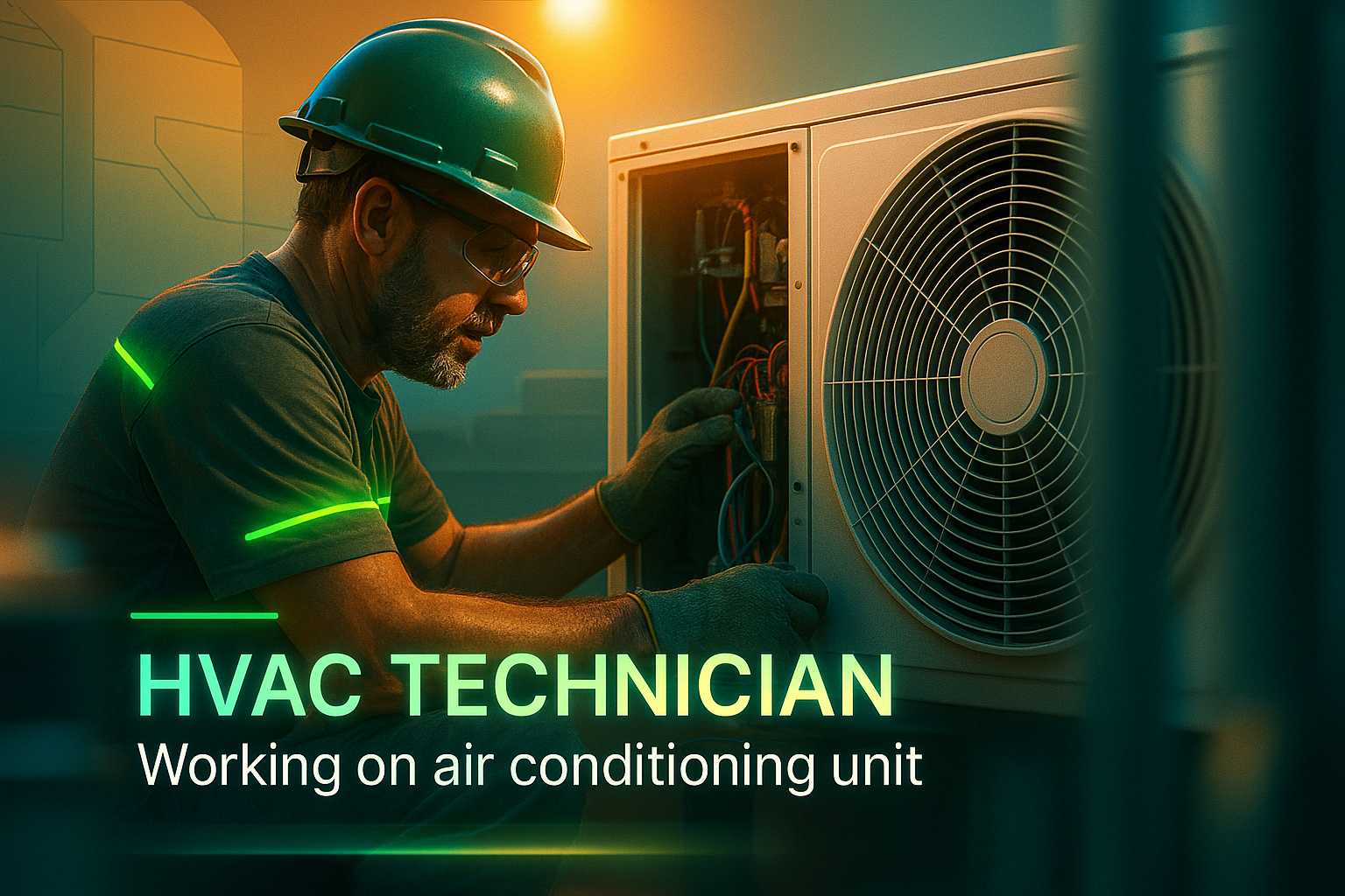 HVAC Technician Working on Air Conditioning Unit in Modern Setting