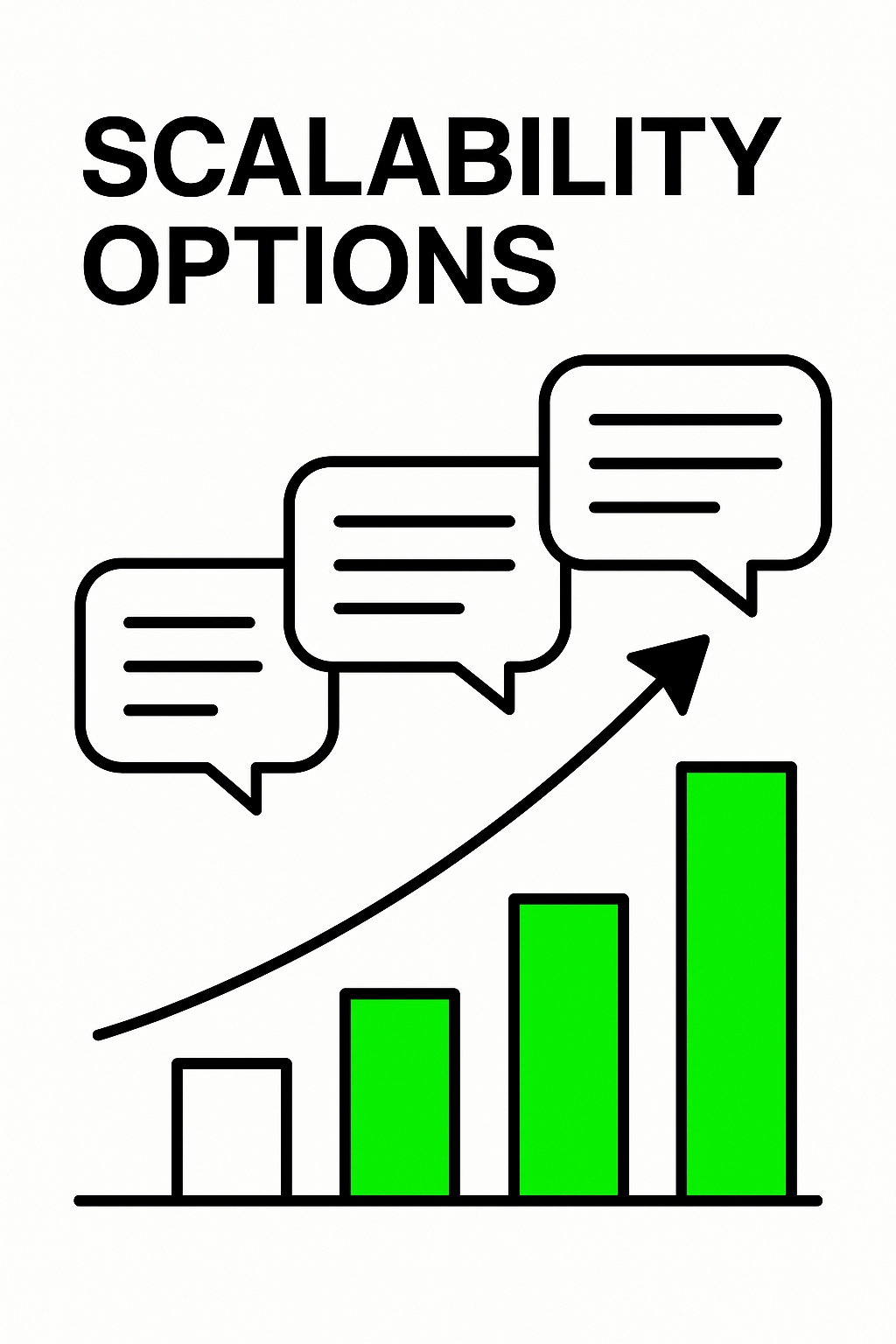 Minimalist infographic depicting scalability options through a growth chart with speech bubbles, ideal for business presentations and educational purposes.