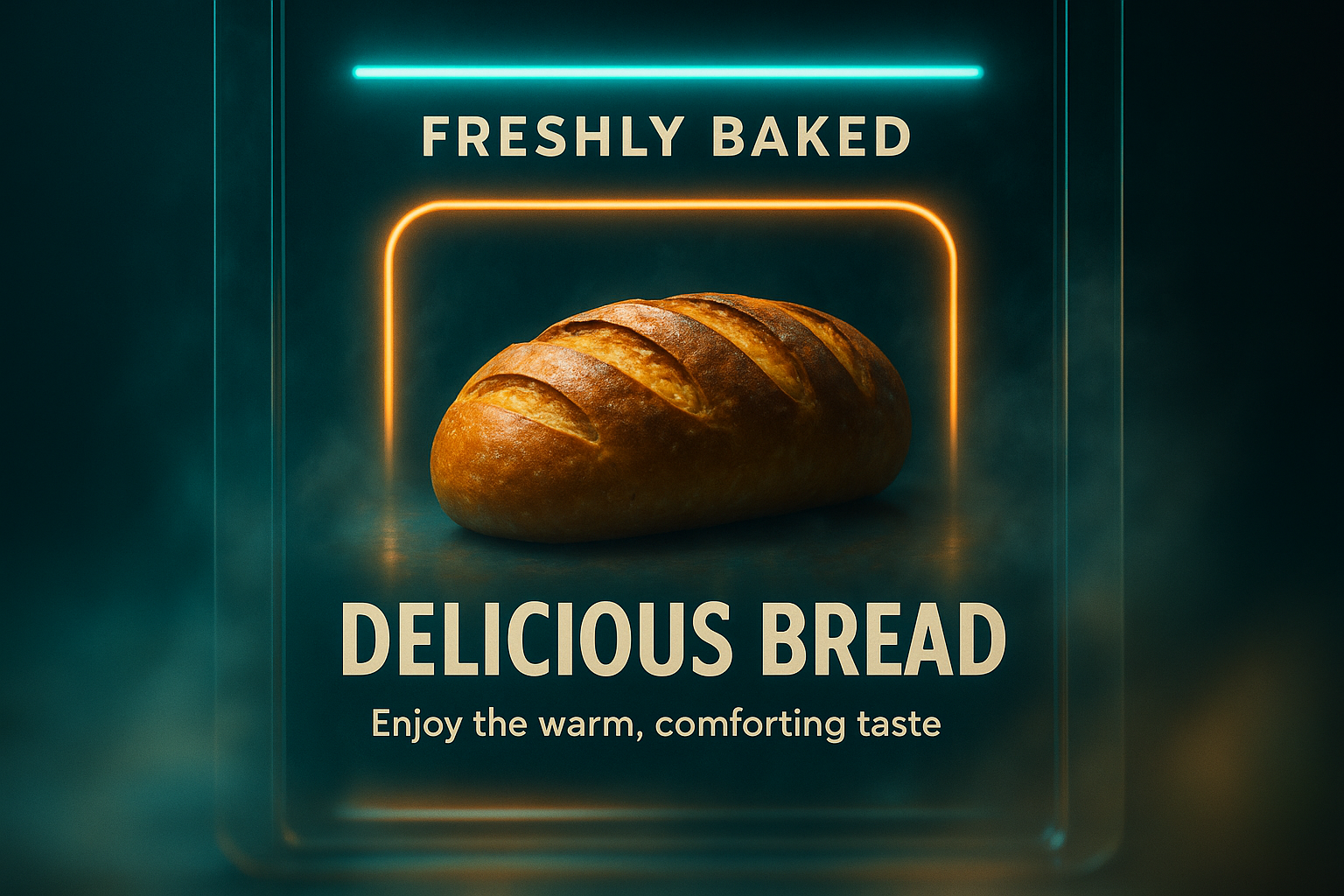 Freshly Baked Bread with Neon Accents and Comforting Text