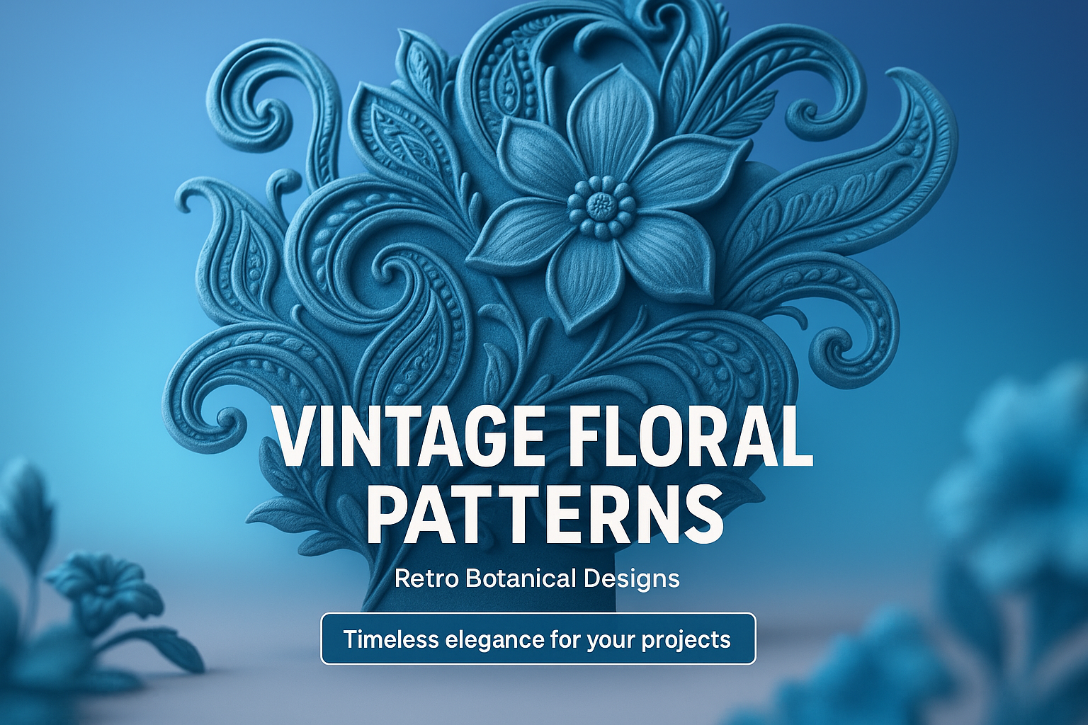 /Collection: /by davooda/Type: PNG/A stunning representation of vintage floral patterns featuring intricate blue botanical designs. The composition showcases a smooth gradient background with embossed elements.