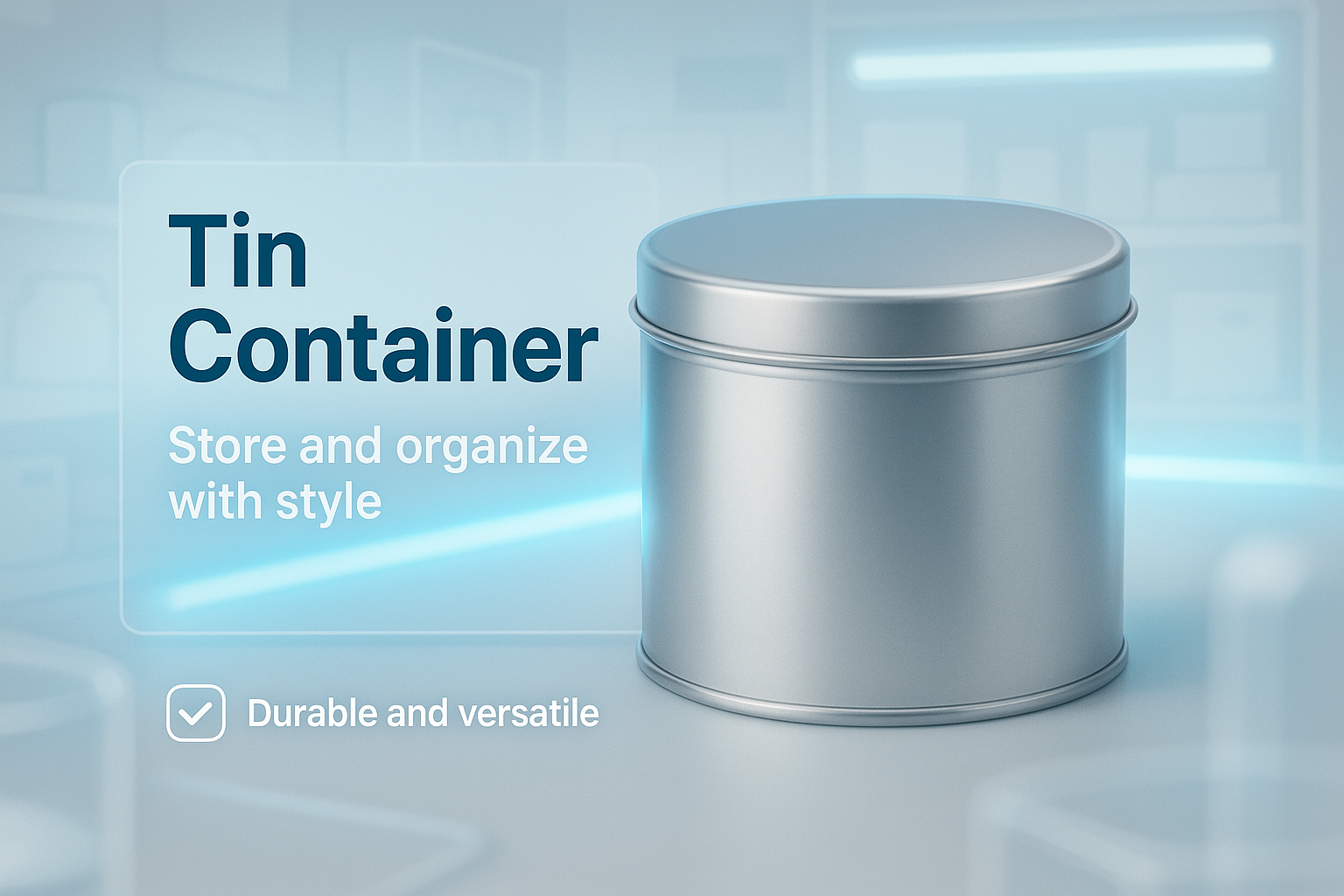 3D product mockup of a sleek tin container, designed for storage and organization. The contemporary style emphasizes durability and versatility, ideal for marketing storage solutions.