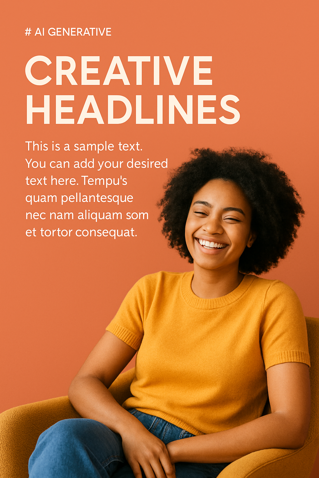 Cheerful Woman Smiling in Cozy Setting with Headline Design