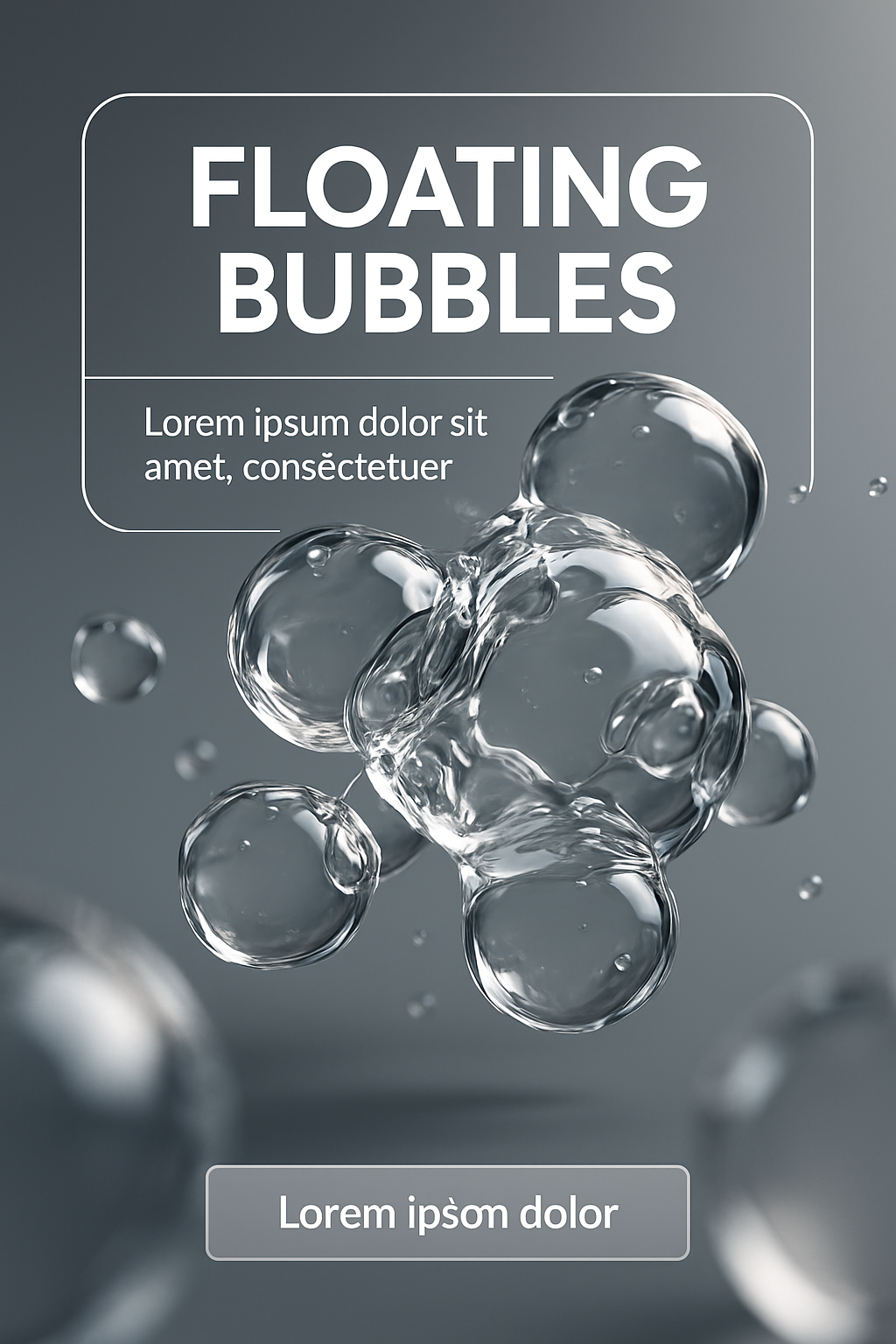 A visually appealing graphic featuring transparent bubbles against a gradient background. Ideal for use in digital media and advertisements to convey a sense of lightness and fluidity.