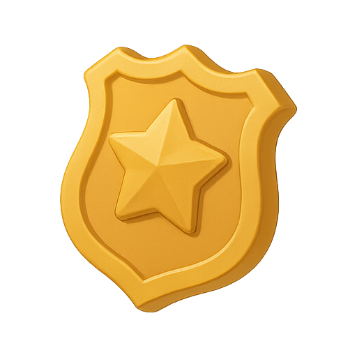 A stylized 3D rendering of a gold police badge featuring a star, suitable for use in law enforcement-themed graphics, games, or educational materials.