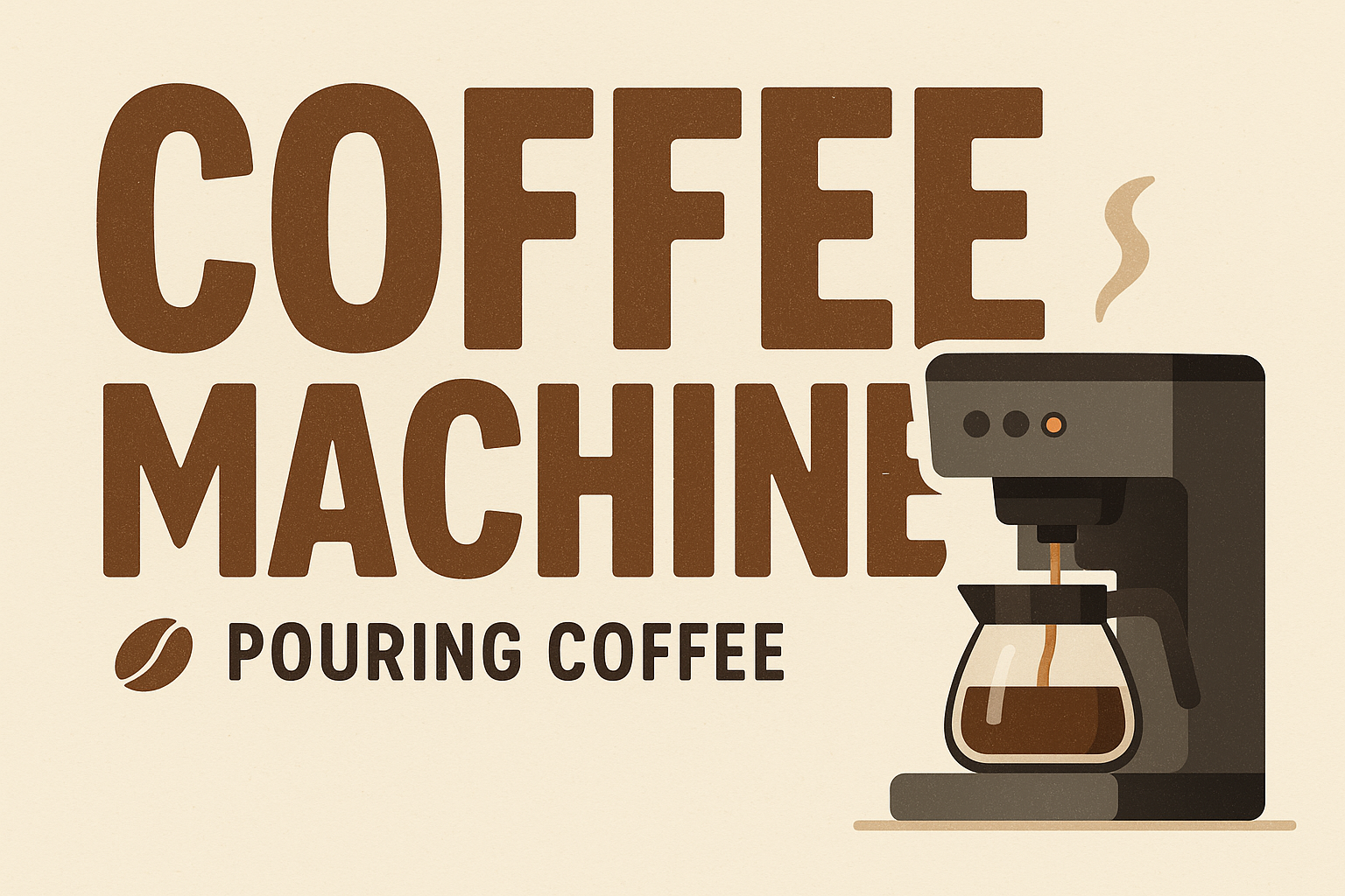 /Collection: /by davooda/Type: PNG/Illustrative graphic featuring a coffee machine pouring coffee, designed with a modern and minimalistic style. Ideal for coffee-related branding or promotional materials.