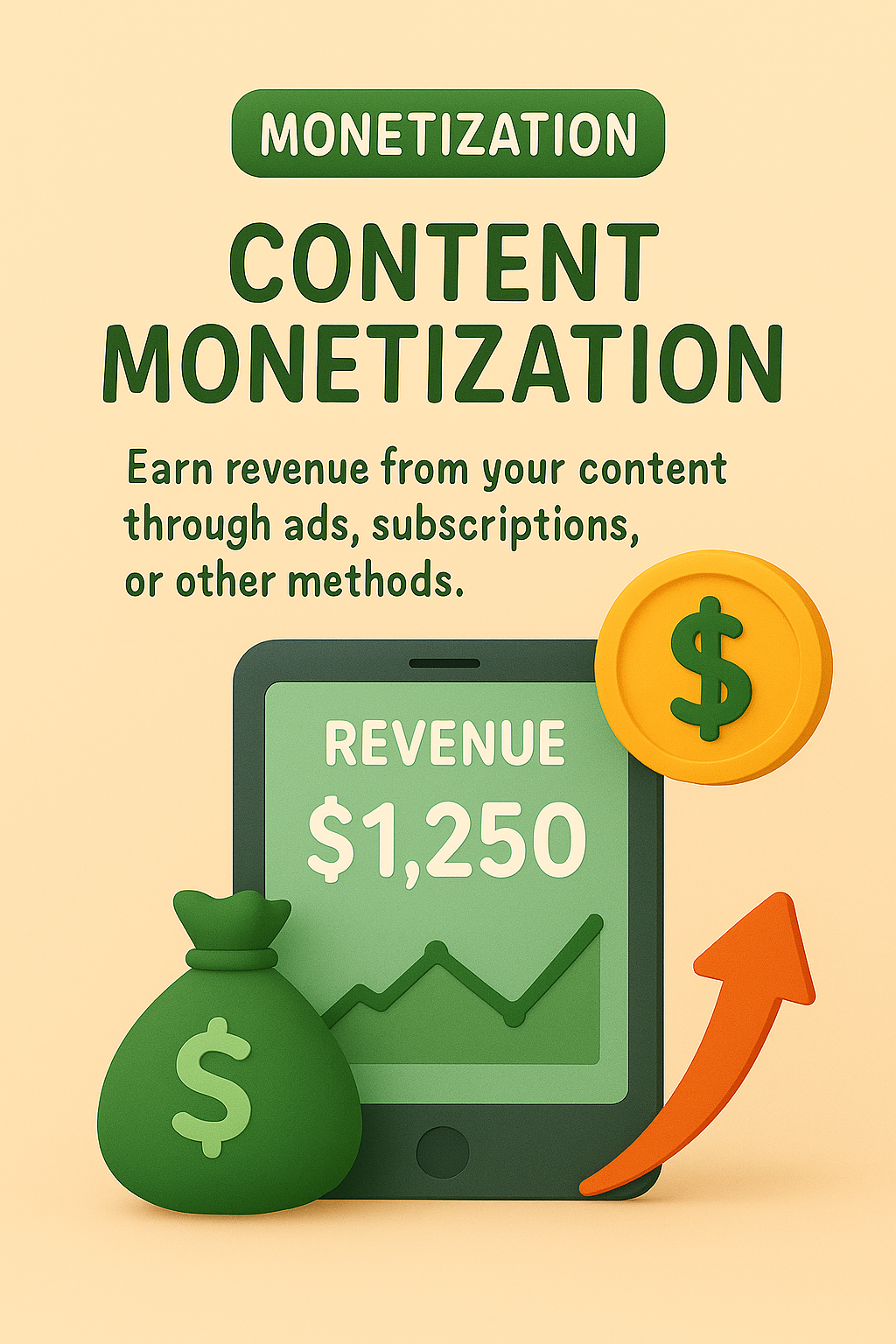 /Collection: /by davooda/Type: PNG/Vibrant illustration depicting content monetization concepts, featuring a smartphone, currency symbols, and growth indicators; ideal for educational content on revenue generation.