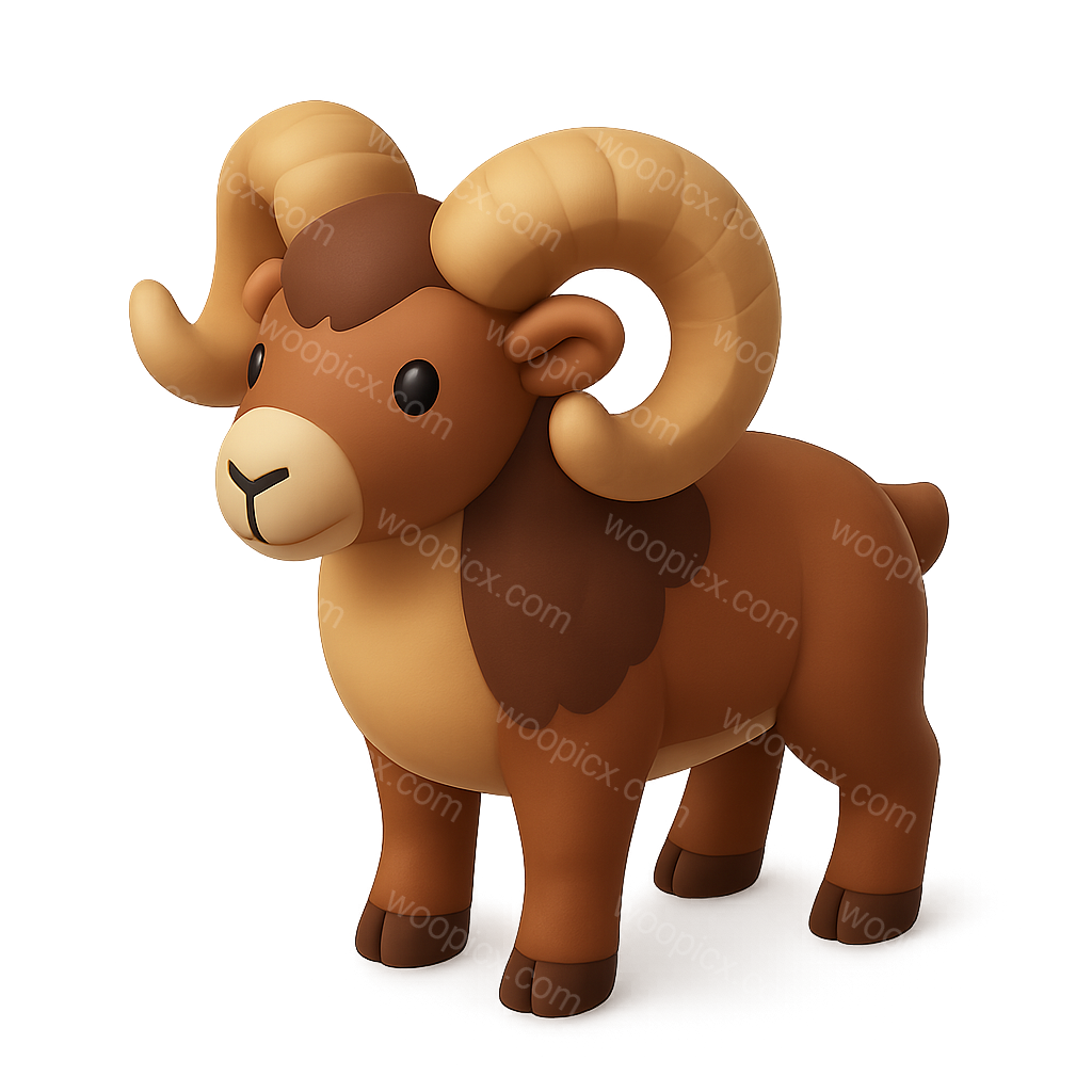 A stylized 3D icon of a mouflon wild sheep, featuring a three-quarter view and a soft, isometric design. The sheep has prominent horns and a playful expression, set against a gradient background.