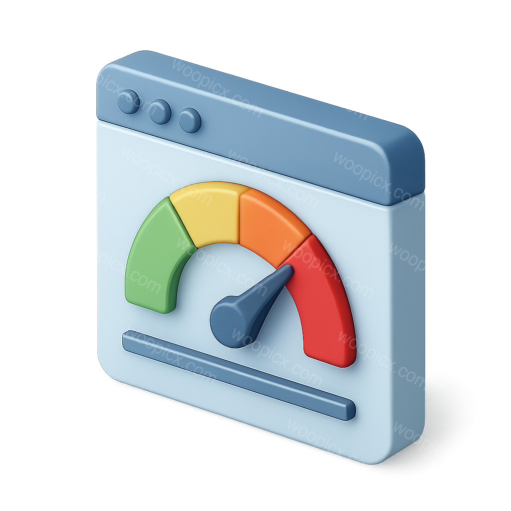 /Premium/Collection: /by davooda/Type: PNG/A sleek 3D dashboard gauge icon featuring a colored meter with green, yellow, and red segments. The icon has a transparent background and a three-quarter isometric view, emphasizing its volumetric design.