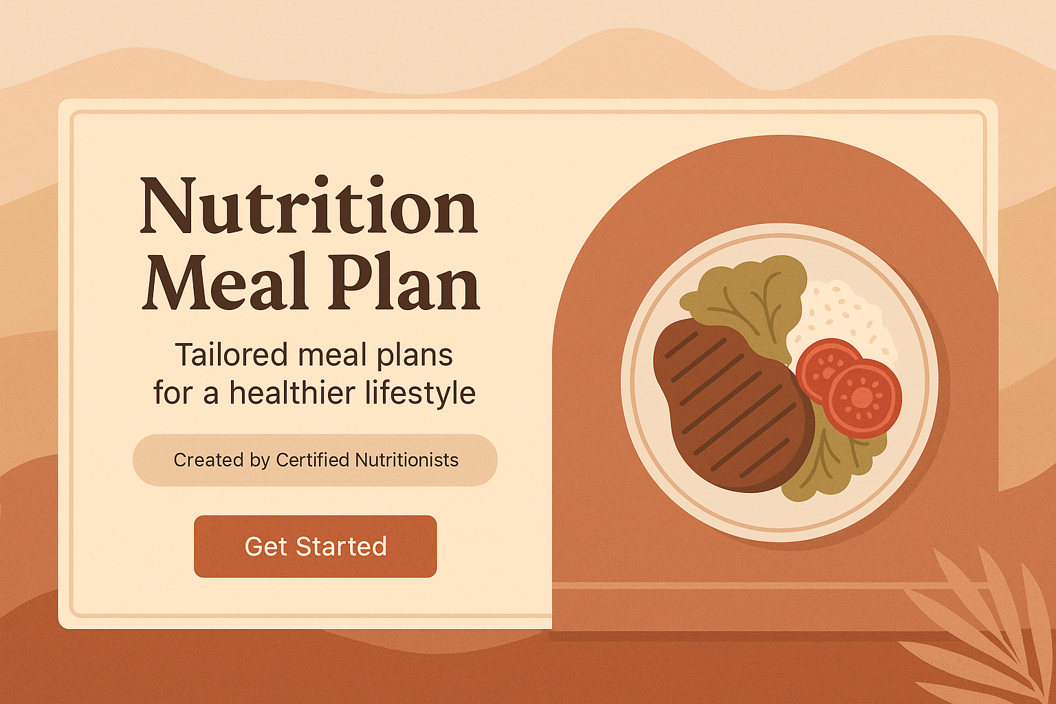/Collection: /by davooda/Type: PNG/A visually appealing landing page design in boho style featuring a nutrition meal plan. The layout includes a main visual of a healthy meal, engaging headlines, and a clear call-to-action.