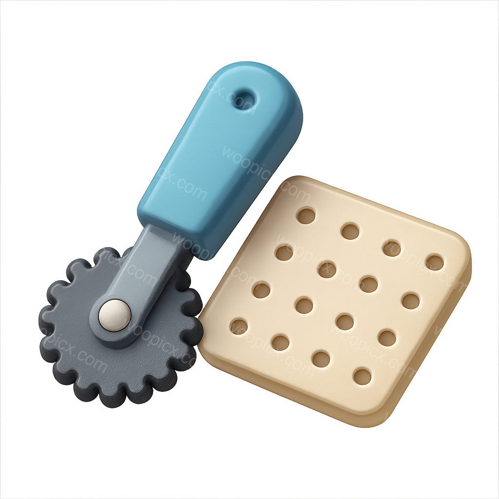 /Premium/Collection: /by davooda/Type: PNG/This image features a 3D perforating wheel icon with a blue handle and a gray wheel, positioned alongside a square piece with evenly spaced dots. The design has a transparent background and a three-quarter view.