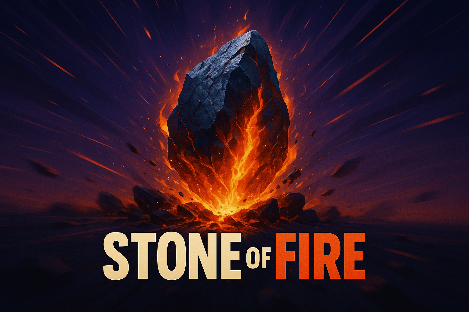 Dynamic 3D Illustration of Stone of Fire with Explosive Visual Effects