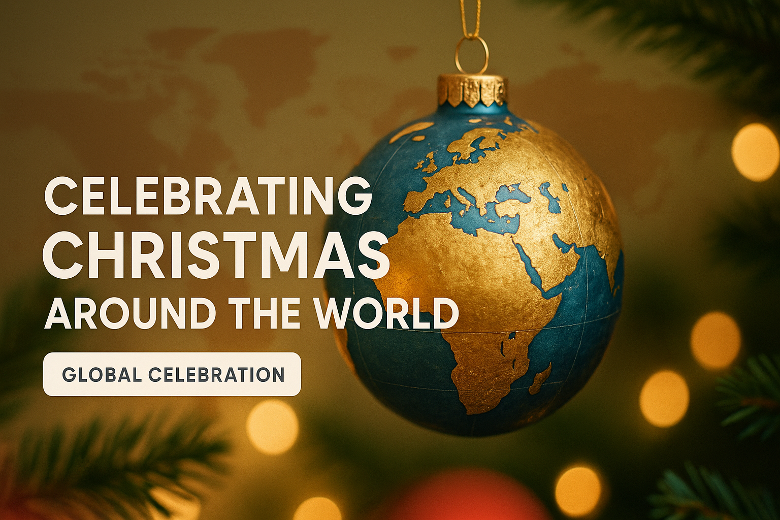 /Collection: /by davooda/Type: PNG/Festive image featuring a Christmas ornament designed as a globe, symbolizing global celebration. Ideal for holiday marketing, social media, and event promotions.