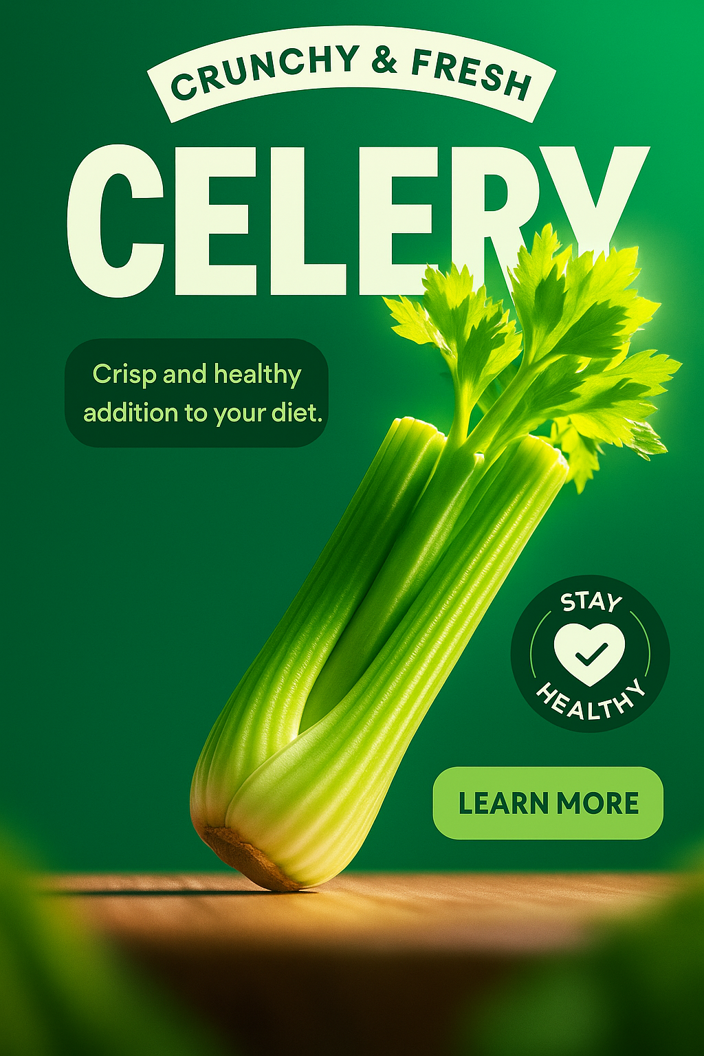 Dynamic Realistic Celery Scene with Engaging Text Elements