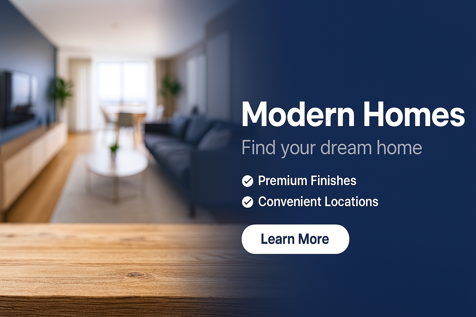/Collection: /by davooda/Type: PNG/A modern living room scene featuring a wooden table in the foreground, with a blurred background showcasing a stylish apartment interior. The design emphasizes clean lines and a professional aesthetic.