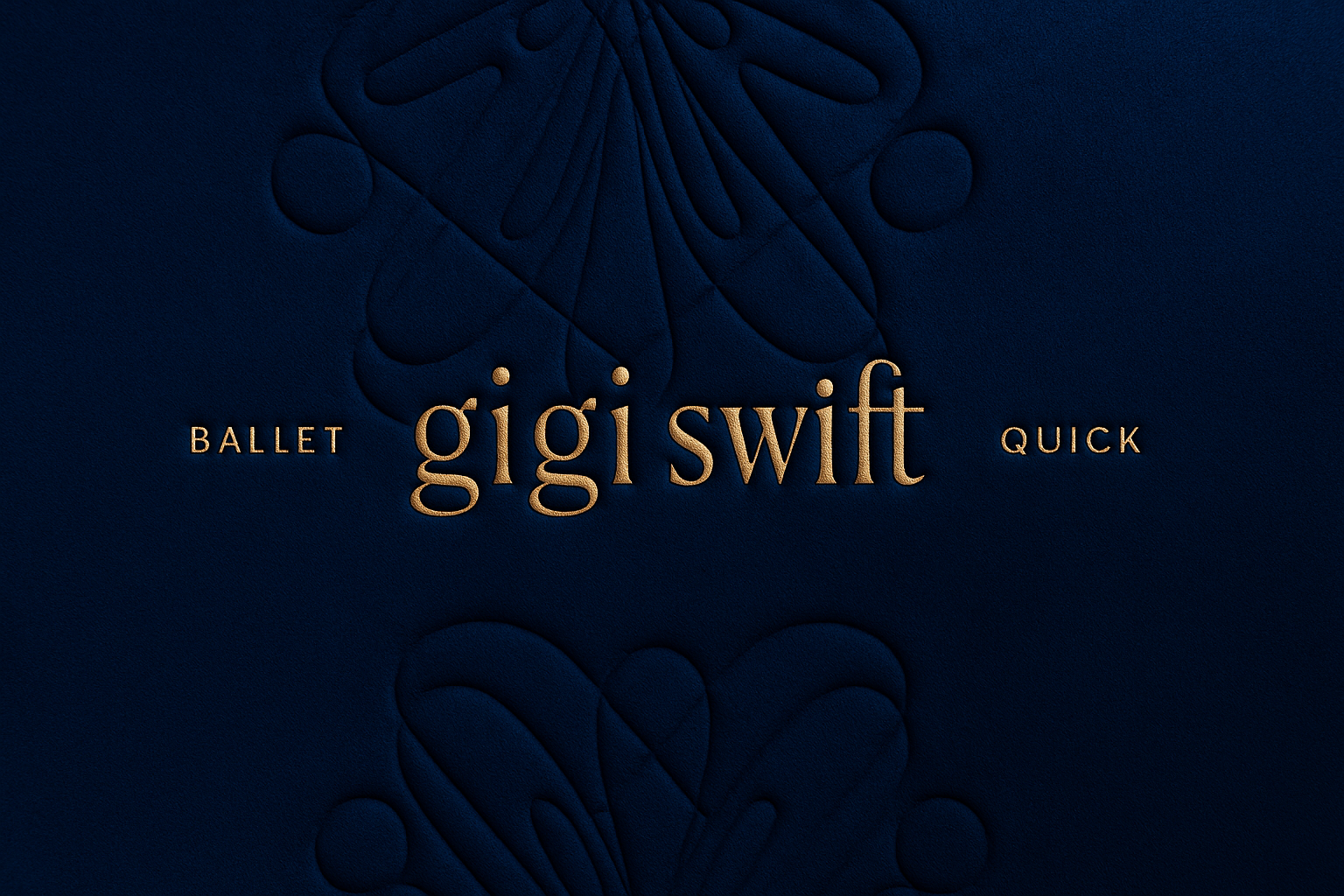 The image showcases an elegant design featuring embossed patterns with a sophisticated text layout. The dark blue background enhances the contrast of the golden typography.