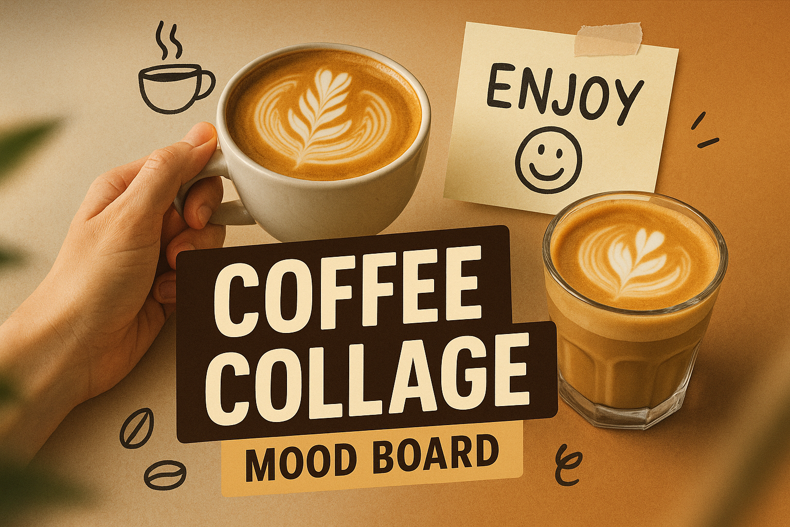 Coffee Collage Mood Board Featuring Latte Art and Enjoyment