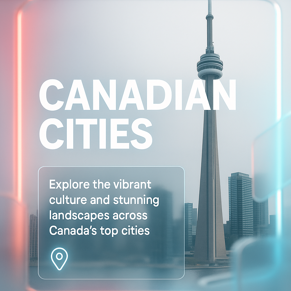 A visually appealing promotional graphic highlighting the vibrant culture and landscapes of Canada's cities. Ideal for travel blogs or tourism campaigns.