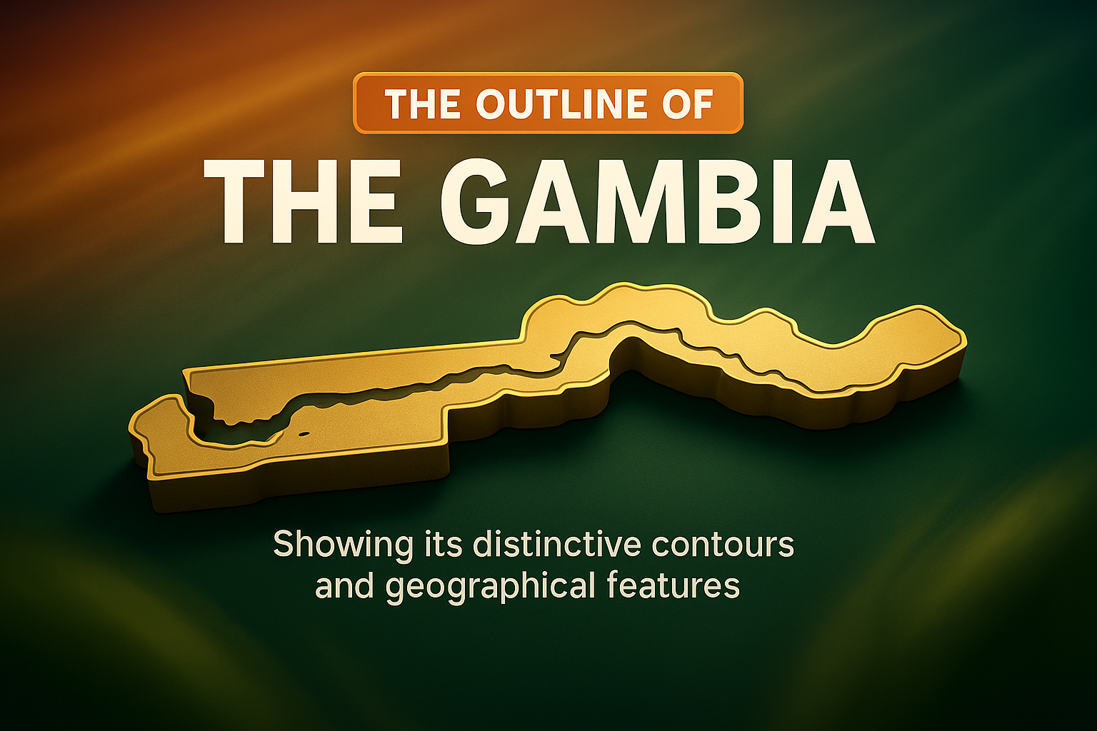 A visually striking 3D illustration of The Gambia's outline, showcasing its unique contours and geographical features. Ideal for educational and informational purposes.