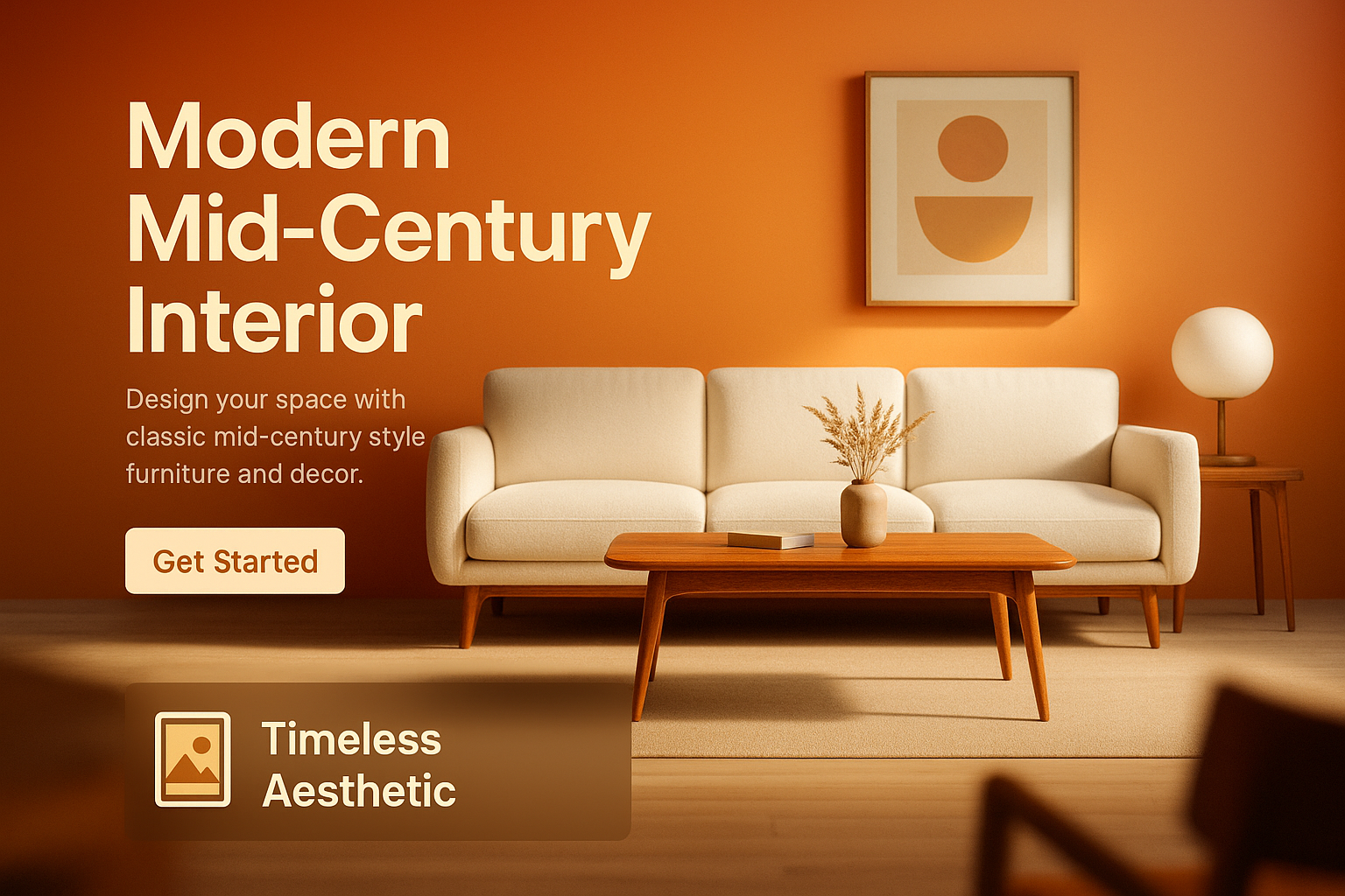 Modern Mid-Century Interior Design Concept with Sofa and Decor