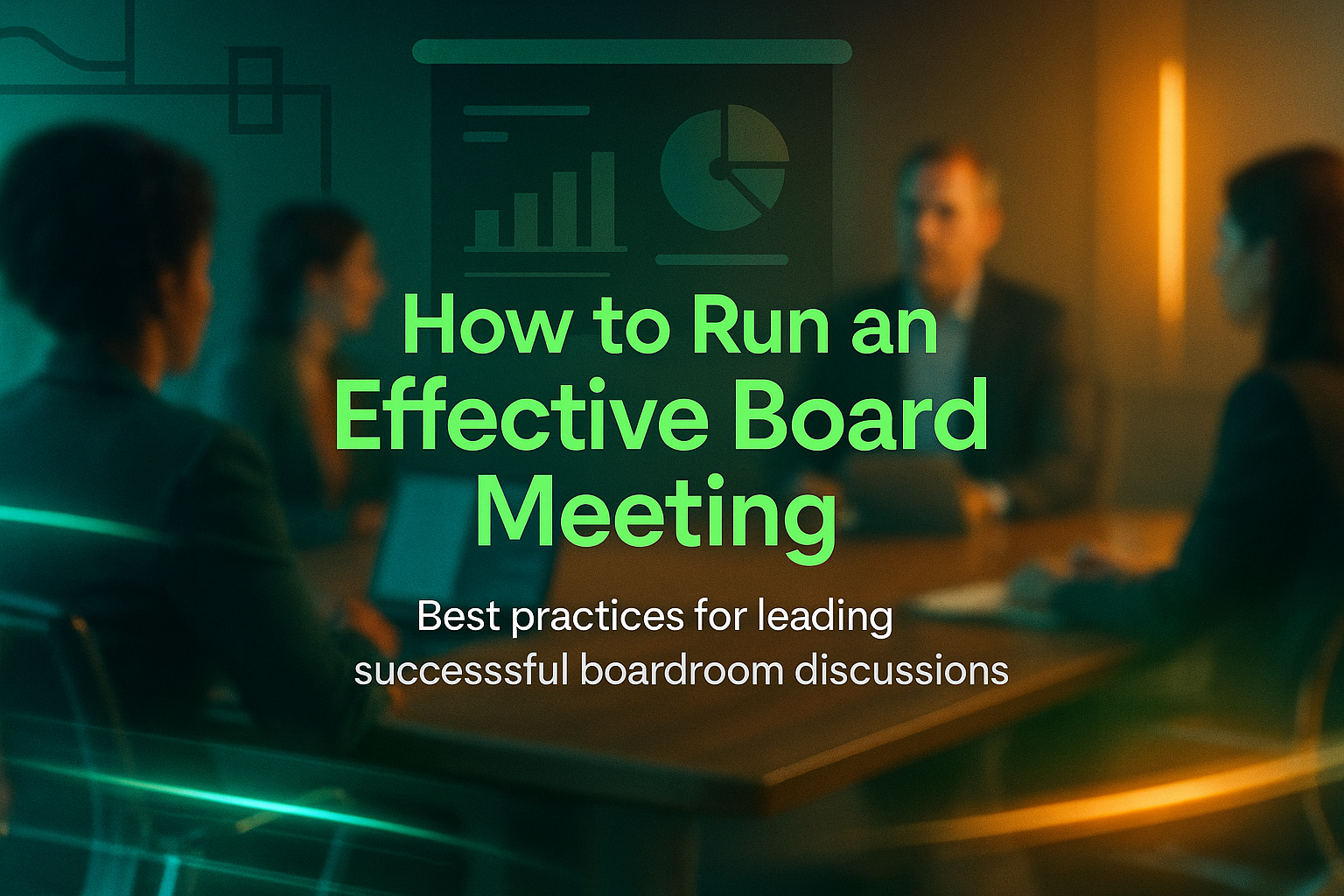 Informative visual featuring best practices for leading successful boardroom discussions. Designed for corporate training or leadership content.