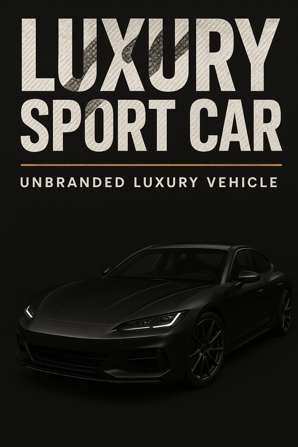Sleek promotional image showcasing a luxury sport car against a dark background, featuring bold typography. Ideal for automotive marketing and branding.
