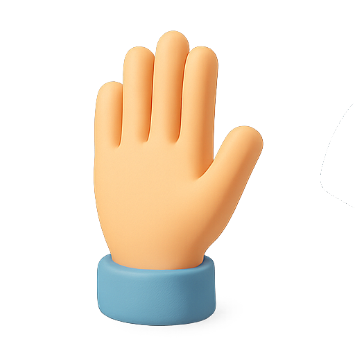 A 3D rendered stylized hand icon with a soft color palette, ideal for use in digital interfaces, apps, or educational materials. The design is modern and playful, appealing to a wide audience.