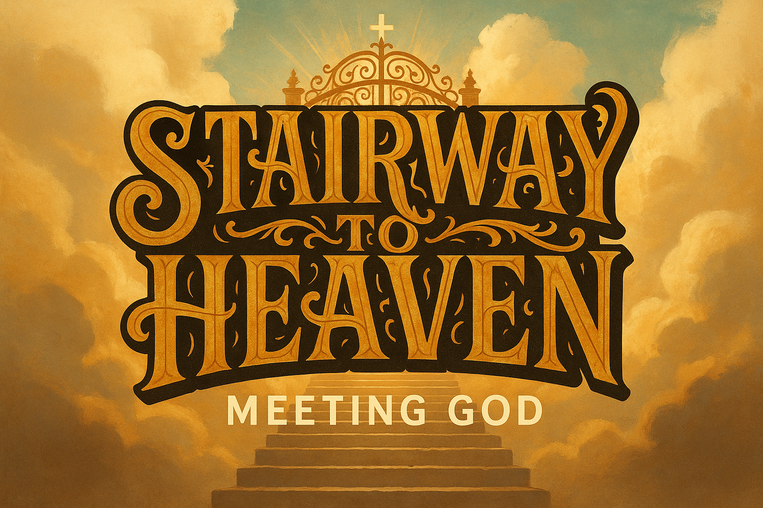 A visually captivating graphic featuring ornate typography and a heavenly backdrop, ideal for spiritual or inspirational content. The design evokes themes of transcendence and divine connection.