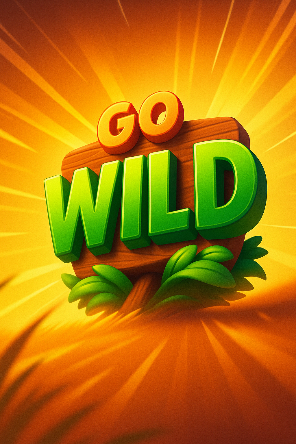 /Collection: /by davooda/Type: PNG/A vibrant design featuring the phrase 'GO WILD' in bold green letters against a warm gradient background. Dynamic rays emanate from the center, enhancing the energetic feel.