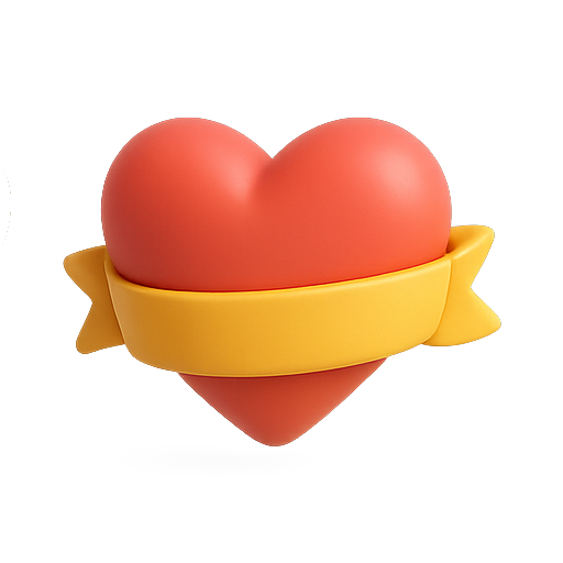/Collection: /by davooda/Type: PNG/A stylized 3D heart icon wrapped with a yellow ribbon, ideal for expressing love and affection in digital designs. Perfect for social media, messaging, or romantic themes.