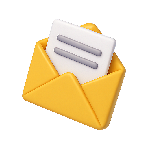 A visually appealing 3D representation of an email icon featuring a yellow envelope with a document inside. Ideal for digital communication themes in app design or website interfaces.