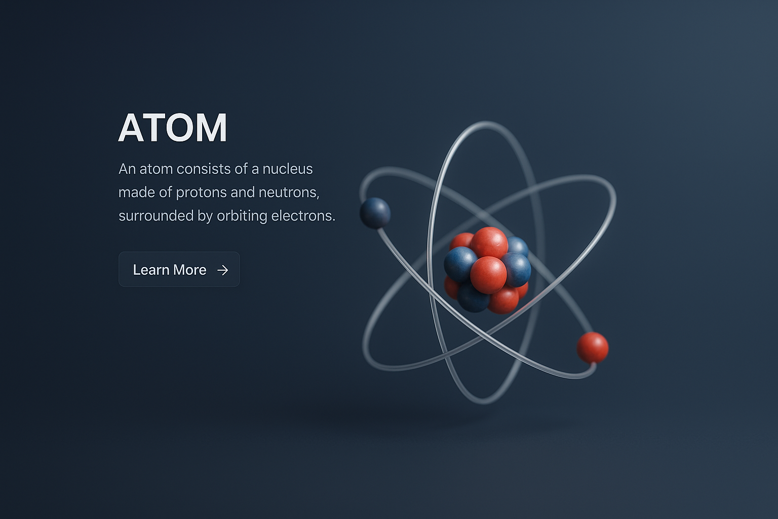 /Collection: /by davooda/Type: PNG/A detailed 3D representation of an atom, featuring a nucleus with protons and neutrons, surrounded by orbiting electrons. The dark gradient background enhances the visual appeal.