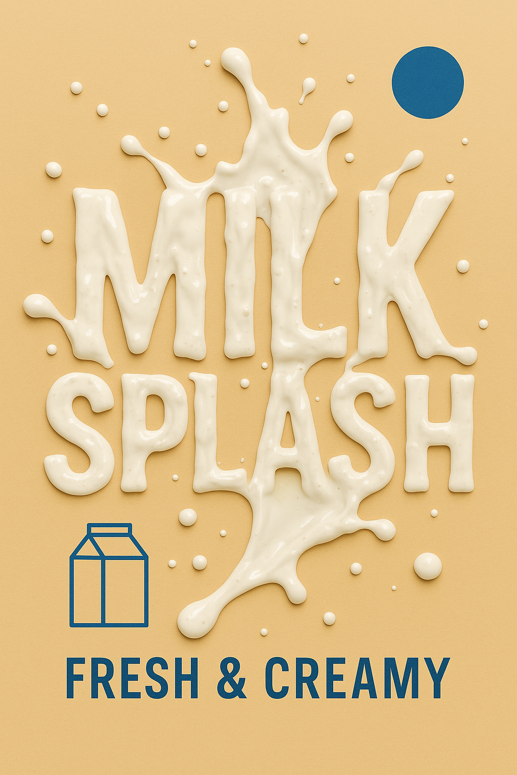Vibrant promotional graphic featuring a splash of milk with bold typography, ideal for dairy product marketing or advertising campaigns targeting consumers.